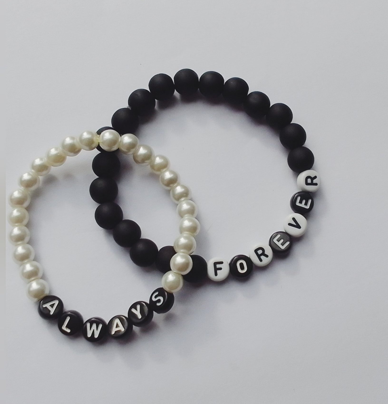 Always & Forever. A promise of love ,combining black matte and white pearl beads for matching set made with love.