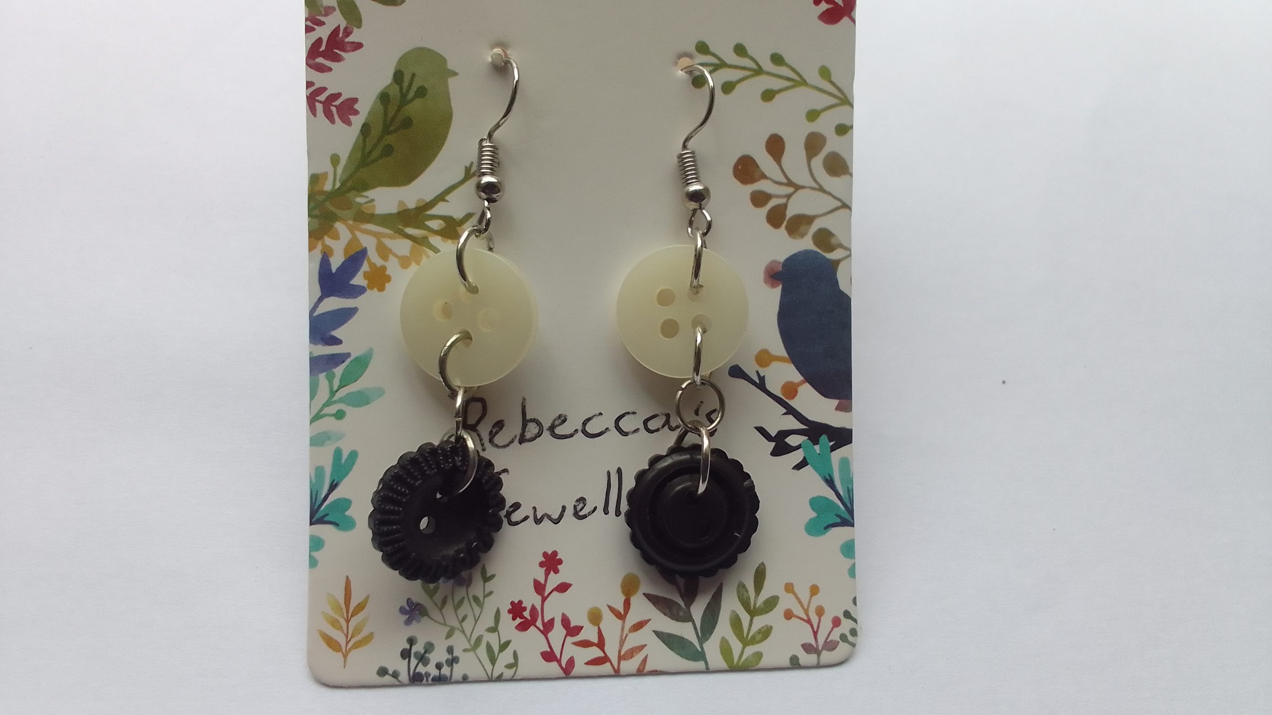One of a kind button earrings with neutral tones. Classic yet chic.