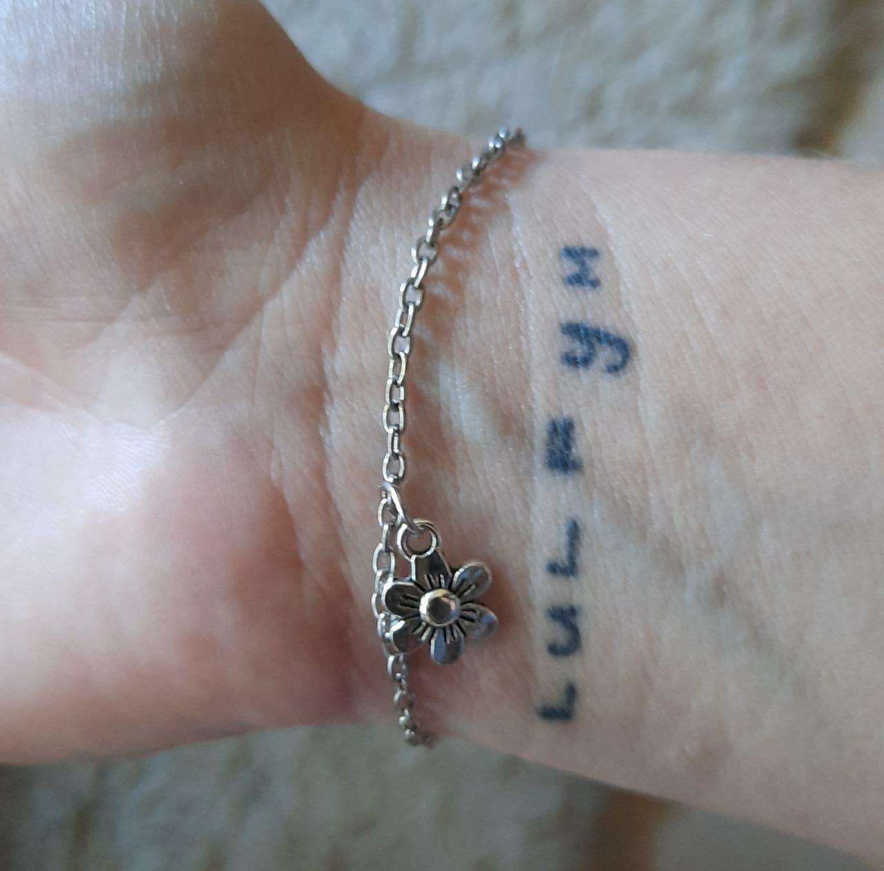 Silver chain with a delicate flower charm. Measurements can be customized.