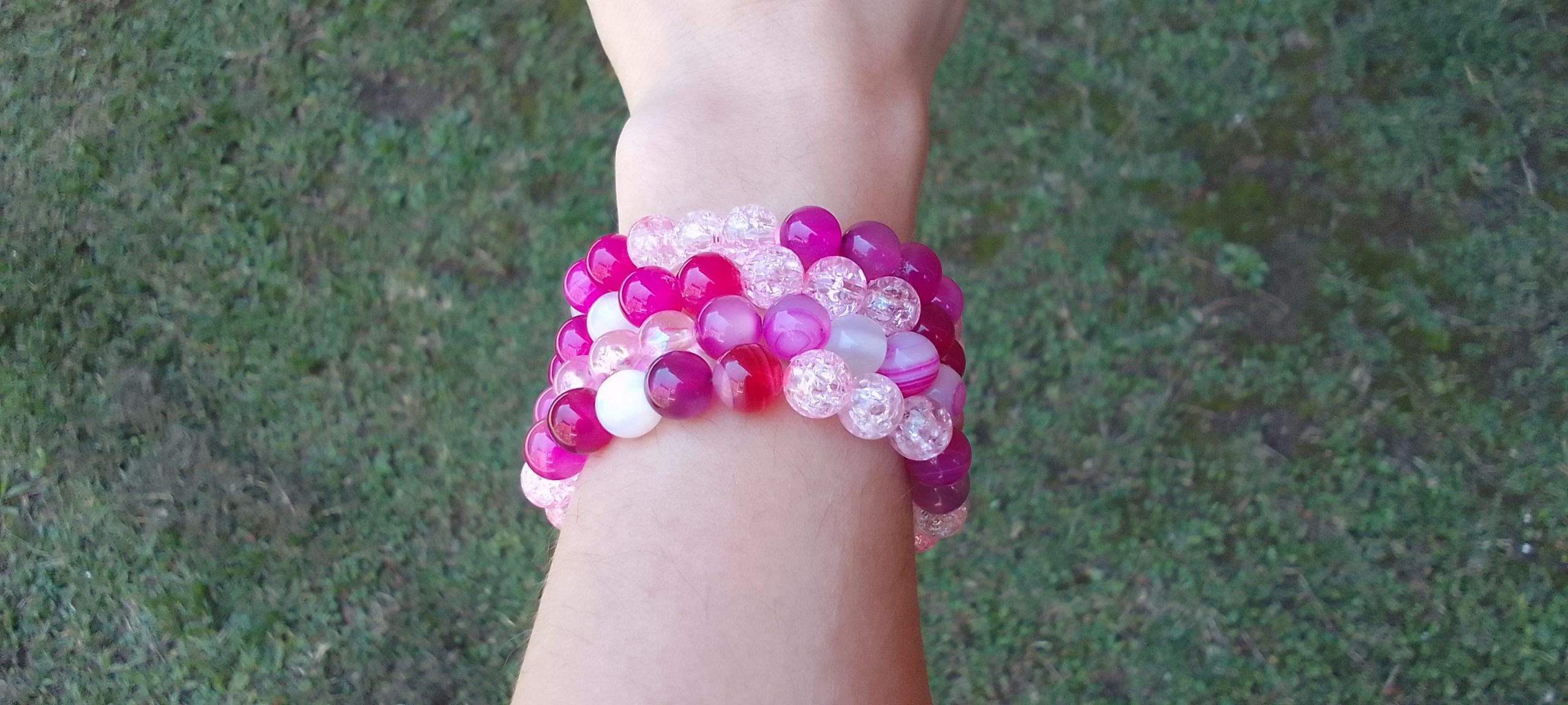 Feminine beauty. Made with rose quartz and pink crackle beads.